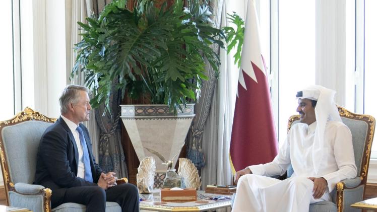 استقبل حضرة صاحب السمو الشيخ تميم بن حمد آل ثاني أمير البلاد المفدى، في مكتبه بالديوان الأميري صباح اليوم، سعادة الدكتور روجر مارشال عضو مجلس الشيوخ عن ولاية كانساس بالولايات المتحدة الأمريكية الصديقة، بمناسبة زيارته للبلاد.