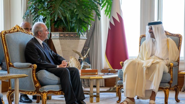 استقبل حضرة صاحب السمو الشيخ تميم بن حمد آل ثاني أمير البلاد المفدى، بمكتبه في الديوان الأميري صباح اليوم، سعادة القاضي بيترو كورزيو رئيس محكمة النقض العليا بالجمهورية الإيطالية الصديقة، والوفد المرافق له، وذلك للسلام على سموه بمناسبة زيارته للبلاد.