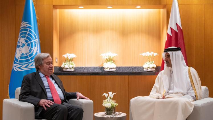 استقبل حضرة صاحب السمو الشيخ تميم بن حمد آل ثاني أمير البلاد المفدى، صباح اليوم، سعادة السيد أنطونيو غوتيريش الأمين العام للأمم المتحدة، وذلك على هامش مؤتمر الأمم المتحدة الخامس المعني بأقل البلدان نموا، بمركز قطر الوطني للمؤتمرات.