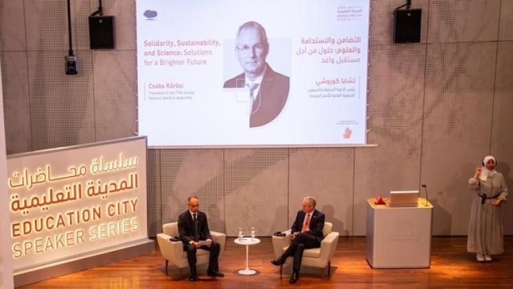 وقال كوروشي، في حلقة نقاشية عقدت اليوم ضمن جلسات سلسلة محاضرات المدينة التعليمية تحت عنوان "التضامن والاستدامة والعلوم.. حلول من أجل مستقبل واعد": "إن المستقبل المستدام لن يتأتى إلا إذا نجحنا جميعا - كبلدان متقدمة ونامية - في السعي الحثيث إلى تحقيقه، وأنه من الضروري أن ندرك أننا إما سننجح جميعا، أو لا أحد سيفعل".