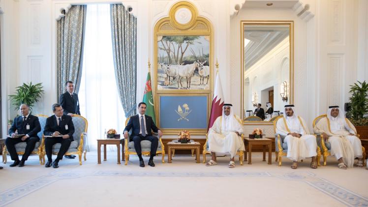 عقد حضرة صاحب السمو الشيخ تميم بن حمد آل ثاني أمير البلاد المفدى، وفخامة الرئيس سردار بيردي محمدوف رئيس تركمانستان الصديقة جلسة مباحثات رسمية، بالديوان الأميري صباح اليوم.