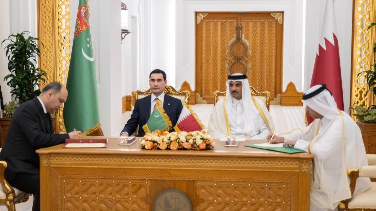 شهد حضرة صاحب السمو الشيخ تميم بن حمد آل ثاني أمير البلاد المفدى، وفخامة الرئيس سردار بيردي محمدوف رئيس تركمانستان، اليوم في الديوان الأميري التوقيع على عدد من الاتفاقيات ومذكرات التفاهم بين حكومتي البلدين.