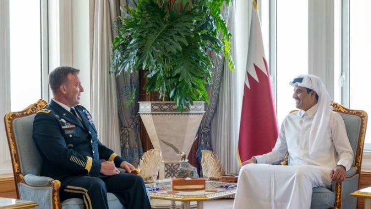 استقبل حضرة صاحب السمو الشيخ تميم بن حمد آل ثاني أمير البلاد المفدى، صباح اليوم، في مكتبه بالديوان الأميري، سعادة الجنرال مايكل كوريلا قائد القيادة المركزية الأمريكية، والوفد المرافق بمناسبة زيارته للبلاد.
