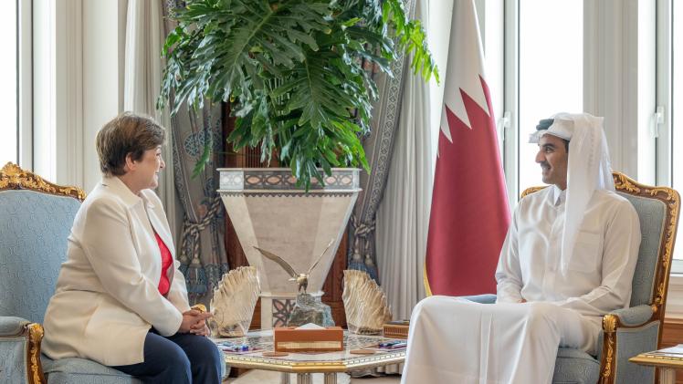 استقبل حضرة صاحب السمو الشيخ تميم بن حمد آل ثاني أمير البلاد المفدى، بمكتبه في الديوان الأميري صباح اليوم، سعادة السيدة كريستالينا غورغييفا مدير عام صندوق النقد الدولي والوفد المرافق لها، بمناسبة زيارتها البلاد للمشاركة في منتدى قطر الاقتصادي 2023.