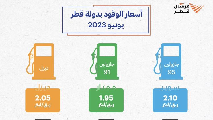 وحددت قطر للطاقة سعر لتر الديزل بـ 2.05 ريال، وسعر الجازولين 95 (سوبر) بـ 2.10 ريال للتر الواحد، وسعر الجازولين 91 (ممتاز) بـ 1.95 ريال للتر الواحد.