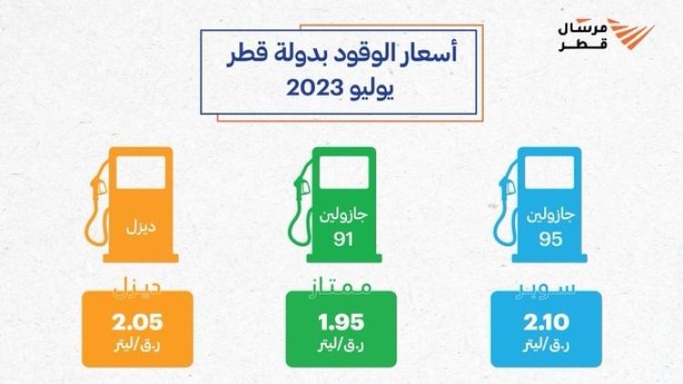 وحددت "قطر للطاقة" سعر لتر الديزل بـ 2.05 ريال، وسعر الجازولين 95 (سوبر) بـ 2.10 ريال للتر الواحد، وسعر الجازولين 91 (ممتاز) بـ 1.95 ريال للتر الواحد.