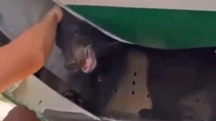 واضطر فريق متخصّص في دبي إلى تخدير الدب وإخراجه من طائرة الخطوط الجوية العراقية، حيث بدا عليه الاضطراب أثناء محاولة إخراجه.