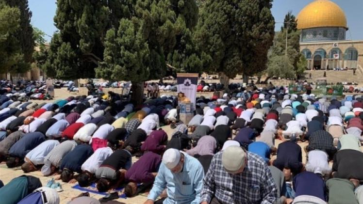 أدى عشرات الآلاف من الفلسطينيين اليوم صلاة الجمعة في رحاب المسجد الأقصى المبارك، رغم تشديد قوات الاحتلال الإسرائيلي إجراءاتها على أبواب المسجد ومداخل البلدة القديمة، في مدينة القدس المحتلة.