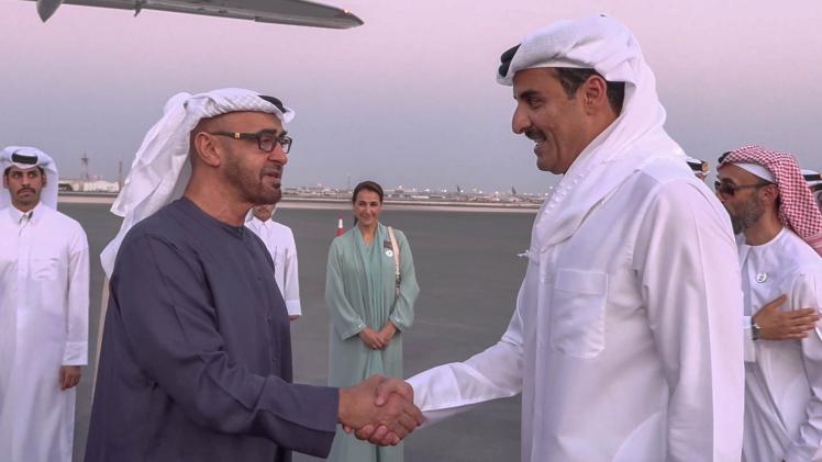 تقدم حضرة صاحب السمو الشيخ تميم بن حمد آل ثاني أمير البلاد المفدى، مودعي أخيه صاحب السمو الشيخ محمد بن زايد آل نهيان رئيس دولة الإمارات العربية المتحدة الشقيقة، لدى مغادرته والوفد المرافق اليوم، بعد ختام زيارة للبلاد لحضور حفل افتتاح معرض إكسبو 2023 الدوحة للبستنة.