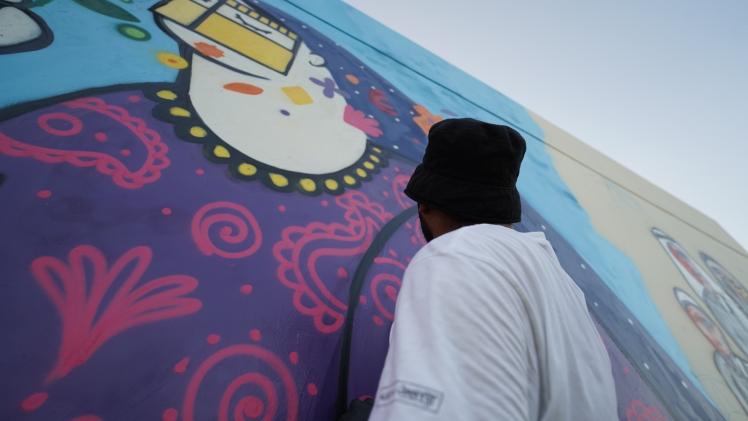 ونفذ الجداريات الفنية الموجودة في المعرض الفنانان عبدالرحمن المطوع ومبارك المالك بالتعاون بين هيئة متاحف قطر ومركز تمكين ورعاية كبار السن “إحسان”.