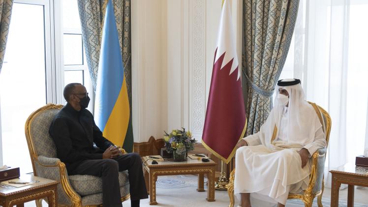 بحث حضرة صاحب السمو الشيخ تميم بن حمد آل ثاني أمير البلاد المفدى، وفخامة الرئيس بول كاغامي رئيس جمهورية رواندا، العلاقات الثنائية بين البلدين وسبل دعمها وتعزيزها في مختلف مجالات التعاون لا سيما في الاقتصاد والتجارة والاستثمار.