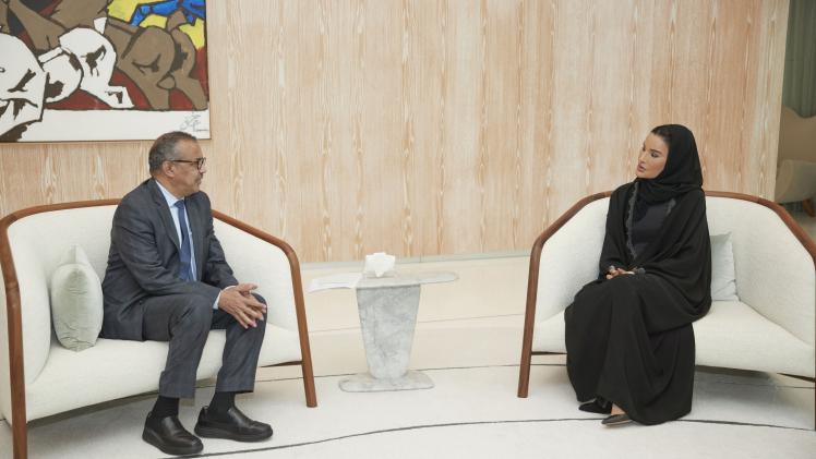 اجتمعت صاحبة السمو الشيخة موزا بنت ناصر، رئيس مجلس إدارة مؤسسة قطر للتربية والعلوم وتنمية المجتمع ومؤسسة التعليم فوق الجميع، اليوم، بسعادة الدكتور تيدروس أدهانوم غيبريسوس المدير العام لمنظمة الصحة العالمية.