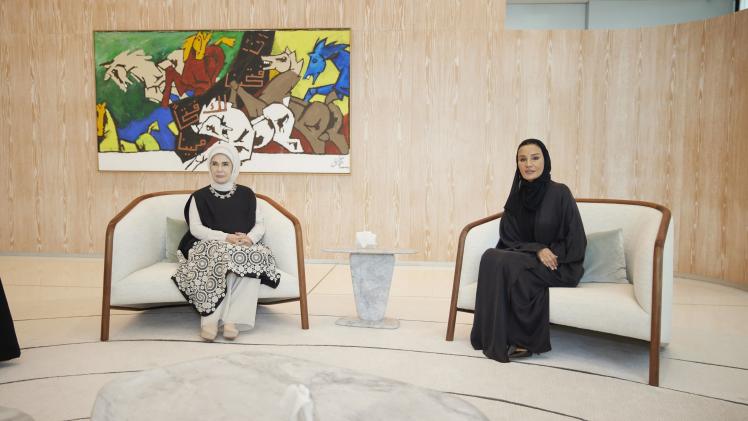اجتمعت صاحبة السمو الشيخة موزا بنت ناصر، رئيس مجلس إدارة مؤسسة قطر للتربية والعلوم وتنمية المجتمع ومؤسسة التعليم فوق الجميع،اليوم، بسعادة السيدة أمينة أردوغان، حرم فخامة رئيس الجمهورية التركية الشقيقة.