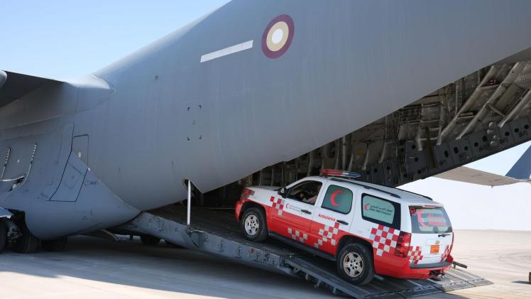 توجهت إلى مدينة العريش في جمهورية مصر العربية الشقيقة، اليوم، طائرة تابعة للقوات المسلحة القطرية، تحمل 24 طنا من المساعدات، تتضمن مواد غذائية وطبية و6 سيارات إسعاف، مقدمة من صندوق قطر للتنمية، ووزارة الصحة العامة، والهلال الأحمر القطري، تمهيدا لنقلها إلى غزة، ليبلغ بذلك مجموع الطائرات 38 طائرة، بإجمالي 1243 طنا.