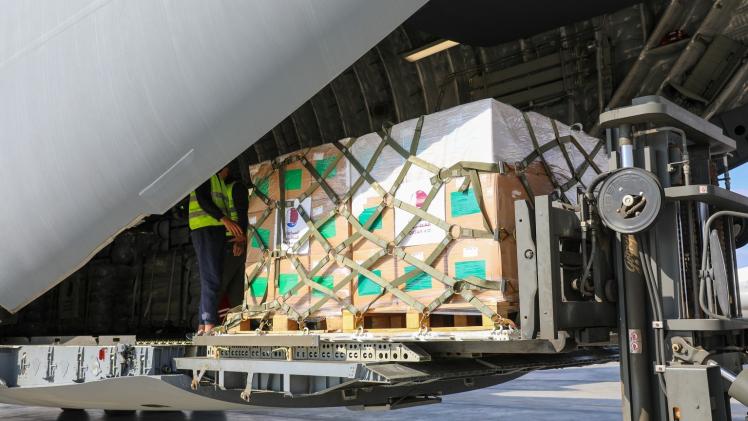 وصلت إلى مدينة العريش في جمهورية مصر العربية الشقيقة، اليوم، طائرة تابعة للقوات المسلحة القطرية، تحمل 37 طنا من المساعدات، تتضمن مستلزمات إيواء ومواد غذائية، مقدمة من صندوق قطر للتنمية، تمهيدا لنقلها إلى غزة، ليبلغ بذلك مجموع الطائرات 58 طائرة بإجمالي 1814 طنا من المساعدات.
