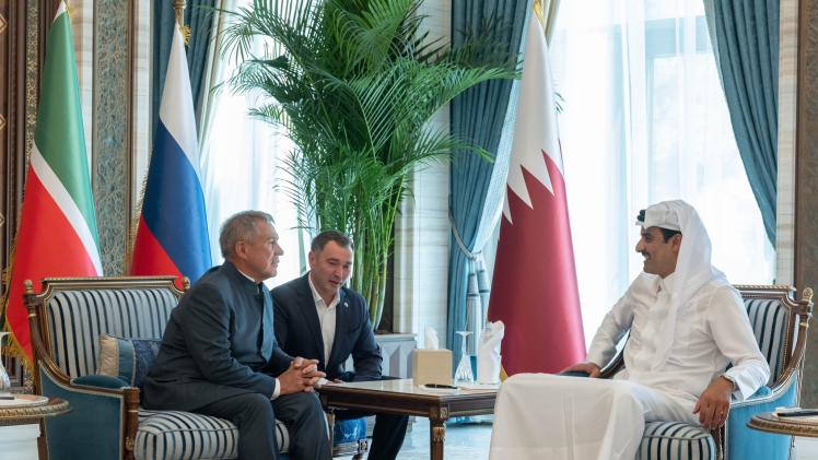 استقبل حضرة صاحب السمو الشيخ تميم بن حمد آل ثاني أمير البلاد المفدى، في مكتبه بقصر لوسيل صباح اليوم، فخامة الرئيس رستم مينيخانوف رئيس جمهورية تتارستان.