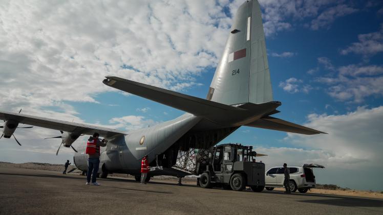 وصلت إلى مدينة العريش في جمهورية مصر العربية الشقيقة، طائرتان تابعتان للقوات المسلحة القطرية، تحملان 41 طنا من المساعدات، تتضمن معدات وأجهزة ومستلزمات طبية، مقدمة من دولة قطر؛ ليبلغ بذلك مجموع الطائرات 72 طائرة، بإجمالي 2144 طنا من المساعدات.