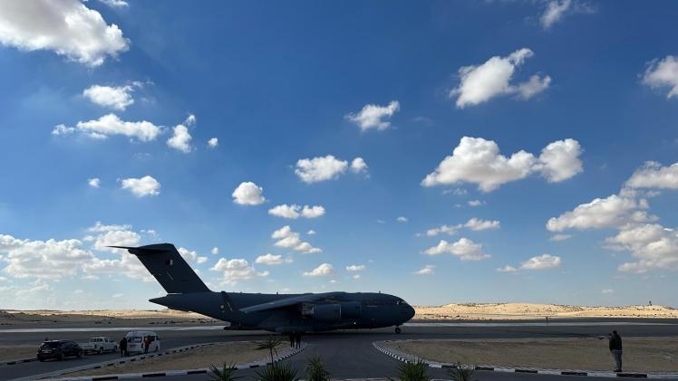 وصلت إلى مدينة العريش في جمهورية مصر العربية الشقيقة، طائرة تابعة للقوات المسلحة القطرية، تحمل 42 طنا من المساعدات، تتضمن مستشفى ميدانيا ومعدات ومستلزمات طبية، مقدمة من دولة قطر؛ ليبلغ بذلك مجموع الطائرات 74 طائرة، بإجمالي 2186 طنا من المساعدات.
