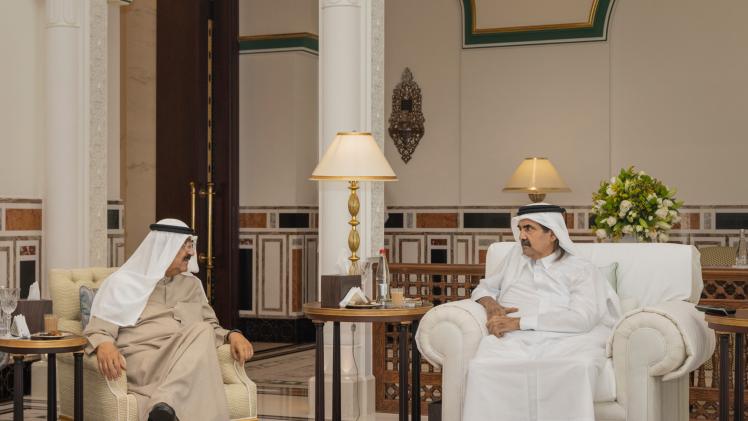 استقبل صاحب السمو الأمير الوالد الشيخ حمد بن خليفة آل ثاني، صاحب السمو الشيخ مشعل الأحمد الجابر الصباح أمير دولة الكويت الشقيقة، في قصر الوجبة اليوم، وذلك بمناسبة زيارته للبلاد.