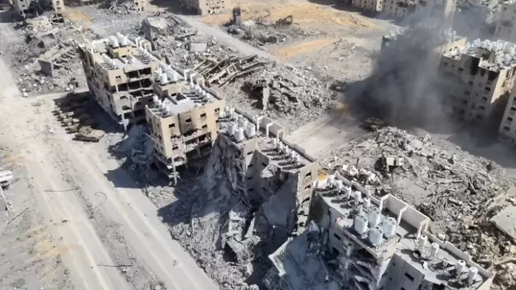 أظهرت صور التقطتها مسيرة إسرائيلية أن قوات الاحتلال بدأت في تدمير مدينة حمد شمال خان يونس في قطاع غزة، كما أظهرت الصور قيام أحد جنود الاحتلال بوضع العلم الإسرائيلي على أحد المنازل بالمدينة.