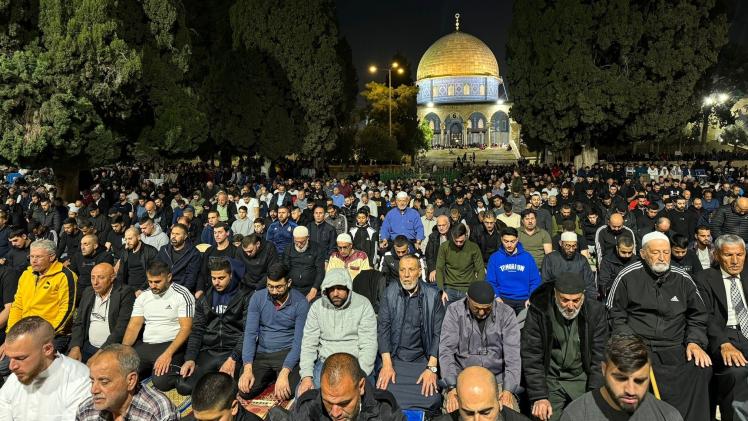 وأفادت دائرة الأوقاف الإسلامية في القدس، بأن 50 ألفا أدوا صلاتي العشاء والتراويح في المسجد الأقصى.
