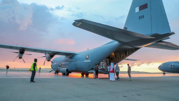 وصلت إلى مدينة العريش في جمهورية مصر العربية الشقيقة، اليوم، طائرة تابعة للقوات المسلحة القطرية، تحمل 5 أطنان من المساعدات، تتضمن مستلزمات إغاثية، مقدمة من مؤسسة التعليم فوق الجميع والهلال الأحمر القطري، تمهيدا لنقلها إلى غزة، ليبلغ بذلك مجموع الطائرات 92 طائرة من المساعدات.