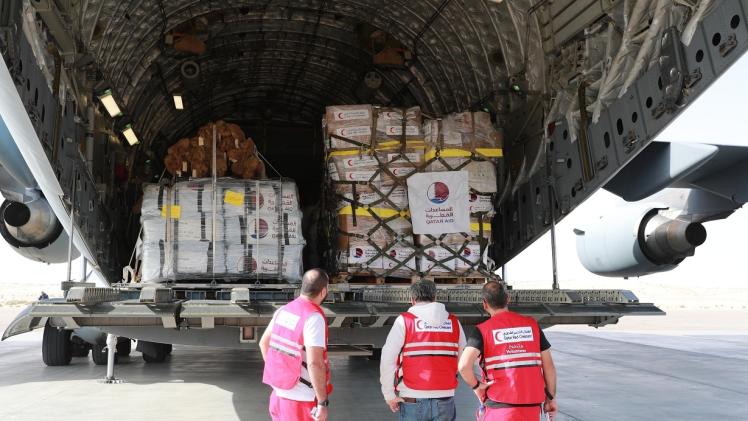 وصلت إلى مدينة العريش في جمهورية مصر العربية الشقيقة، اليوم، طائرة تابعة للقوات المسلحة القطرية، تحمل 11 طنا من المساعدات، تتضمن مواد غذائية مقدمة من الهلال الأحمر القطري، تمهيدا لنقلها إلى غزة، ليبلغ بذلك مجموع الطائرات 94 طائرة من المساعدات.