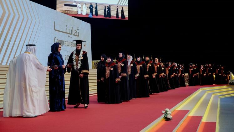 وخلال الحفل كرمت سمو الشيخة جواهر الطالبات الخريجات المتفوقات والبالغ عددهن 478 طالبة، فيما سلم سعادة الدكتور عمر بن محمد الأنصاري رئيس الجامعة الشهادات للخريجات البالغ عددهن 2981 طالبة في مختلف التخصصات.