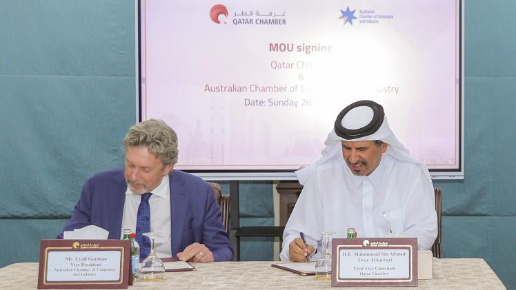 وقع الاتفاقية السيد محمد بن أحمد بن طوار الكواري النائب الأول لرئيس غرفة قطر، والسيد ليال قورمان نائب رئيس غرفة تجارة وصناعة أستراليا، وذلك بحضور سعادة السيد شين فلاناغان سفير أستراليا لدى الدولة.