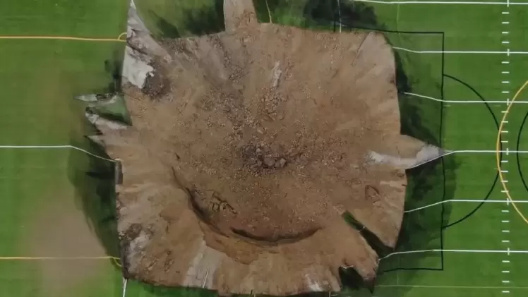 ?منجم يتسبب بابتلاع نصف ملعب لكرة القدم الأمريكية وسط منتزه "غوردون مور" في ألتون بولاية إلينوي.