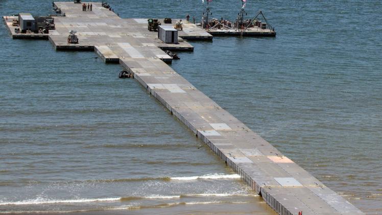 والرصيف البحري العائم الذي بلغت كلفته 230 مليون دولار تم تركيبه لأول مرة في منتصف مايو قبل أن يتم تفكيكه المرة تلو الأخرى بسبب سوء الأحوال الجوية.