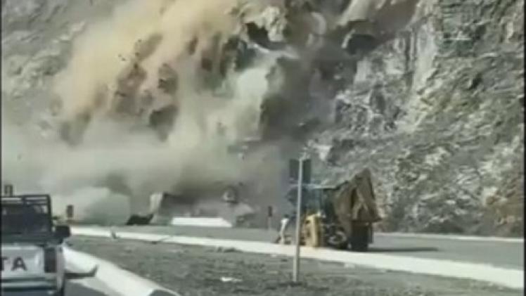 وأظهر الفيديو الغبار الكثيف الناتج عن انهيار الصخور، والذي أدى إلى توقف المركبات وتعطيل حركة المرور وإغلاق الطريق القادم من خميس البحر.