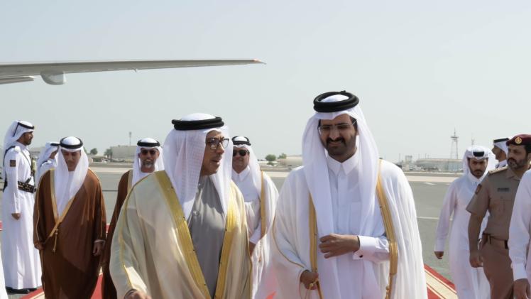 تقدم سمو الشيخ عبدالله بن حمد آل ثاني نائب الأمير، مستقبلي أخيه سمو الشيخ منصور بن زايد آل نهيان نائب رئيس الدولة نائب رئيس مجلس الوزراء رئيس ديوان الرئاسة بدولة الإمارات العربية المتحدة الشقيقة، لدى وصوله والوفد المرافق مطار الدوحة الدولي صباح اليوم، للمشاركة في القمة الثالثة لحوار التعاون الآسيوي.