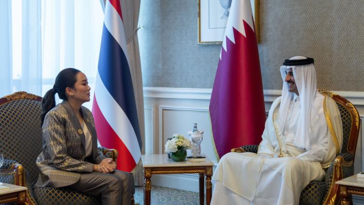 استقبل حضرة صاحب السمو الشيخ تميم بن حمد آل ثاني أمير البلاد المفدى، دولة السيدة بيتونغتارن شيناواترا رئيسة وزراء مملكة تايلاند، وذلك على هامش انعقاد القمة الثالثة لحوار التعاون الآسيوي صباح اليوم بفندق ريتز كارلتون – الدوحة.