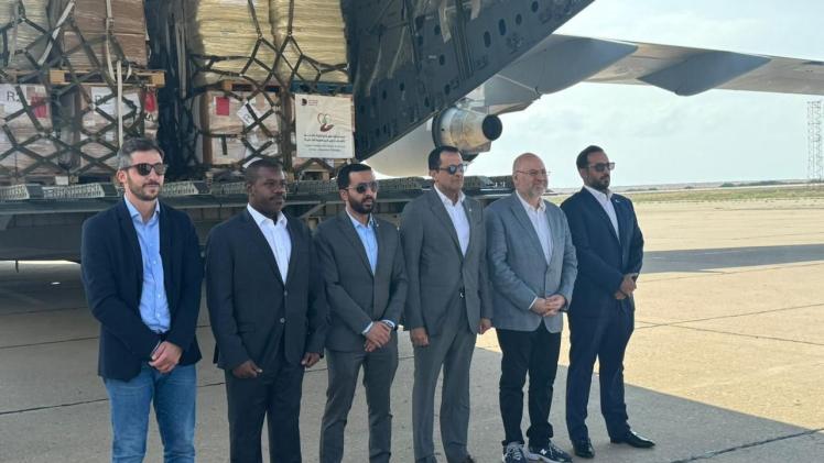 وكان في استقبال المساعدات، سعادة الدكتور فراس الأبيض وزير الصحة العامة في حكومة تصريف الأعمال اللبنانية، وسعادة الشيخ سعود بن عبد الرحمن آل ثاني، سفير دولة قطر لدى
