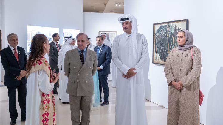 زار حضرة صاحب السمو الشيخ تميم بن حمد آل ثاني أمير البلاد المفدى، ودولة السيد محمد شهباز شريف رئيس وزراء جمهورية باكستان الإسلامية، اليوم معرض "منظر الفن والعمارة في باكستان من الأربعينيات إلى اليوم"، الذي ينظمه متحف مطاحن الفن المستقبلي بالشراكة مع متحف قطر الوطني، وذلك بمتحف قطر الوطني.