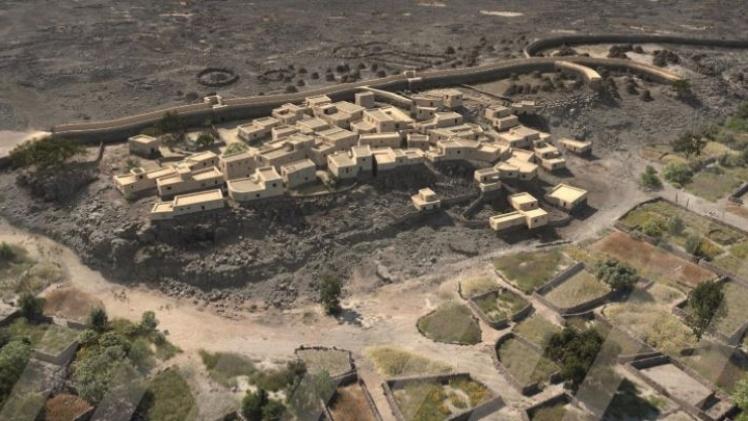 وتقدم القرية المكتشفة دليلا على وجود تقسيم واضح ضمن الحصون والمدن لمناطق مخصصة للسكن وأخرى جنائزية، ويعود تاريخ القرية إلى قرابة 2400-2000 قبل الميلاد، وبلغ عدد سكانها 500 شخص ضمن مساحة 2.6 هكتار، مع وجود سور حجري بطول 15 كم يحيط بالواحة لحمايتها.