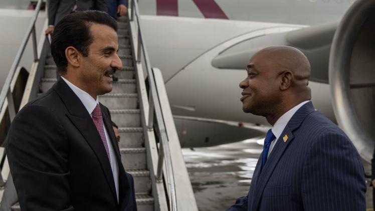 وكان في استقبال سمو الأمير لدى وصوله مطار كاتام العسكري سعادة السيد لويس جلبيرتو موريلو وزير خارجية كولومبيا، وسعادة السيد عيسى بن جابر الكواري سفير دولة قطر لدى كولومبيا وسعادة السيد لويس ميغيل هويوس سفير جمهورية كولومبيا لدى الدولة والسادة أعضاء السفارة القطرية.