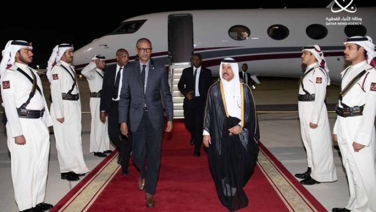 وكان في استقبال فخامته والوفد المرافق لدى وصوله مطار حمد الدولي سعادة الدكتور أحمد بن حسن الحمادي، الأمين العام لوزارة الخارجية، وسعادة السيد إيغور مارارا كاينامورا سفير جمهورية رواندا لدى الدولة.