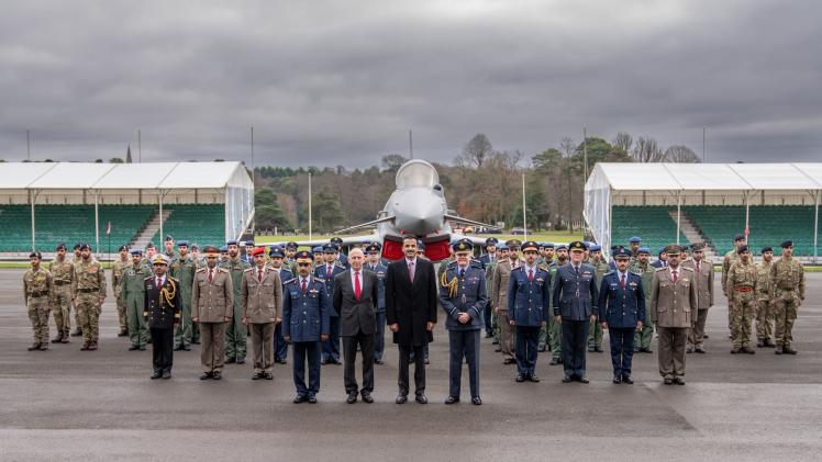 وكان في استقبال سمو الأمير، لدى وصوله، سعادة السيد جون هيلي وزير الدفاع بالمملكة المتحدة، واللواء نيك كاولي قائد الأكاديمية، وعدد من كبار الضباط والقادة العسكريين والمسؤولين.