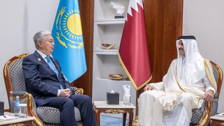 استقبل حضرة صاحب السمو الشيخ تميم بن حمد آل ثاني أمير البلاد المفدى، اليوم، فخامة الرئيس قاسم جومارت توكاييف رئيس جمهورية كازاخستان الصديقة، وذلك على هامش انعقاد منتدى الدوحة 2024 بفندق “شيراتون الدوحة”.