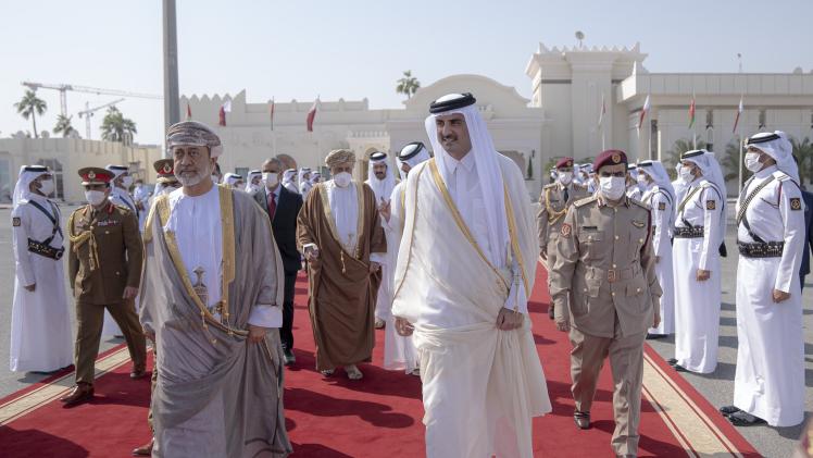 تقدم حضرة صاحب السمو الشيخ تميم بن حمد آل ثاني أمير البلاد المفدى، مودعي أخيه جلالة السلطان هيثم بن طارق سلطان عمان الشقيقة لدى مغادرته والوفد المرافق اليوم مطار الدوحة الدولي، بعد زيارة دولة للبلاد استغرقت يومين.
