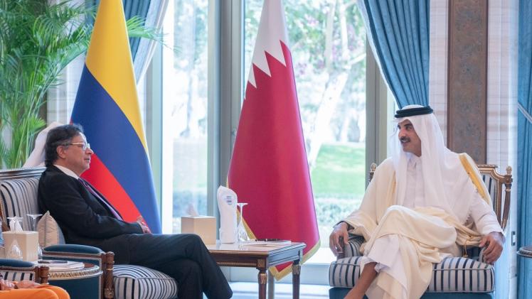 عقد حضرة صاحب السمو الشيخ تميم بن حمد آل ثاني أمير البلاد المفدى، وفخامة الرئيس غوستافو بيترو رئيس جمهورية كولومبيا الصديقة، جلسة مباحثات رسمية اليوم بمكتبه في قصر لوسيل.