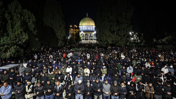 100 ألف مصل يؤدون صلاتي العشاء والتراويح في المسجد الأقصى