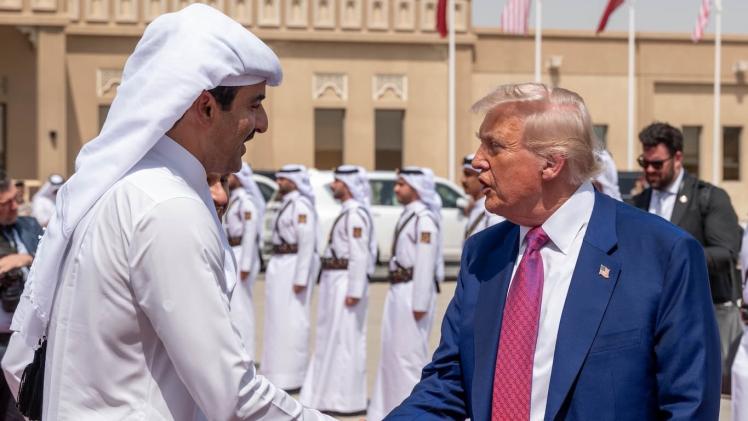 تقدم حضرة صاحب السمو الشيخ تميم بن حمد آل ثاني أمير البلاد المفدى، مودعي فخامة الرئيس دونالد ترامب رئيس الولايات المتحدة الأمريكية الصديقة لدى مغادرته قاعدة العديد الجوية اليوم، بعد زيارة دولة للبلاد استغرقت يومين.