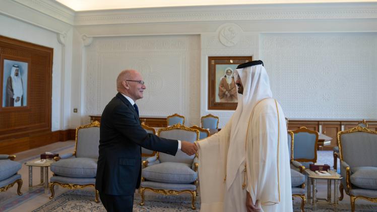 استقبل سمو الشيخ عبدالله بن حمد آل ثاني نائب الأمير، في مكتبه بالديوان الأميري صباح اليوم، سعادة السيد لوتار فرايشلادر سفير جمهورية ألمانيا الاتحادية، للسلام على سموه بمناسبة انتهاء فترة عمله في البلاد.