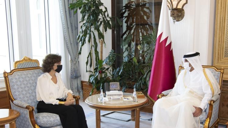 استقبل معالي الشيخ خالد بن خليفة بن عبد العزيز آل ثاني، رئيس مجلس الوزراء ووزير الداخلية، صباح اليوم، سعادة السيدة اودري اوزلاي المديرة العامة لمنظمة الأمم المتحدة للتربية والعلم والثقافة (اليونسكو) والوفد المرافق لها، بمناسبة زيارتها للبلاد.