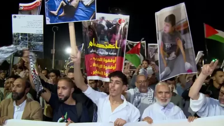 تظاهر آلاف المغاربة، مساء أمس الجمعة، عبر مسيرات ليلية في عدة مدن بالمملكة، مطالبين بوقف تجويع وإبادة الفلسطينيين في قطاع غزة.