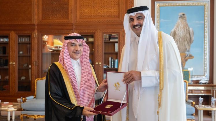 استقبل حضرة صاحب السمو الشيخ تميم بن حمد آل ثاني أمير البلاد المفدى، بمكتبه في الديوان الأميري صباح اليوم، سمو الأمير منصور بن خالد بن عبدالله الفرحان آل سعود سفير المملكة العربية السعودية الشقيقة، وذلك للسلام على سموه بمناسبة انتهاء فترة عمله في البلاد.