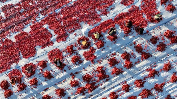 يزين الفلفل الأحمر المحلي أسطح المنازل في حي جيرغلان بمدينة قيصري التركية، قبل أن يضفي نكهة خاصة على موائد الطعام في العالم.